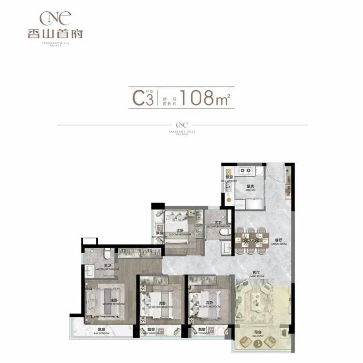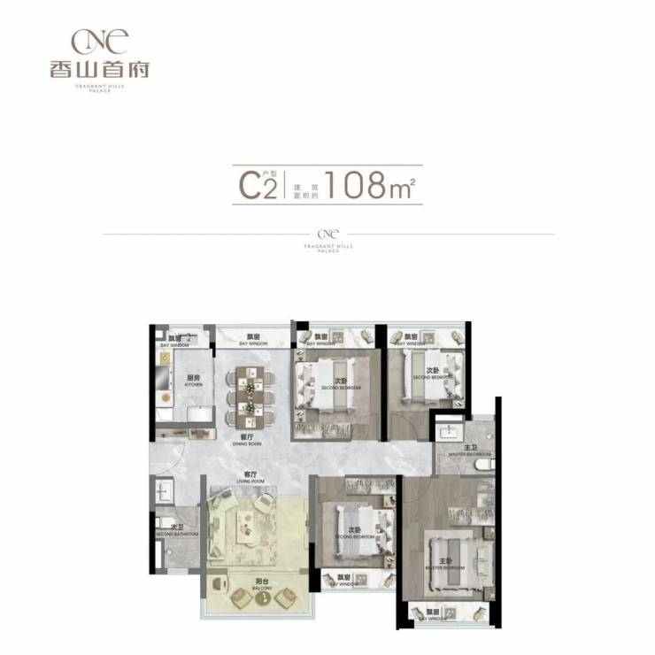 ▫建面约108㎡四房两厅两卫