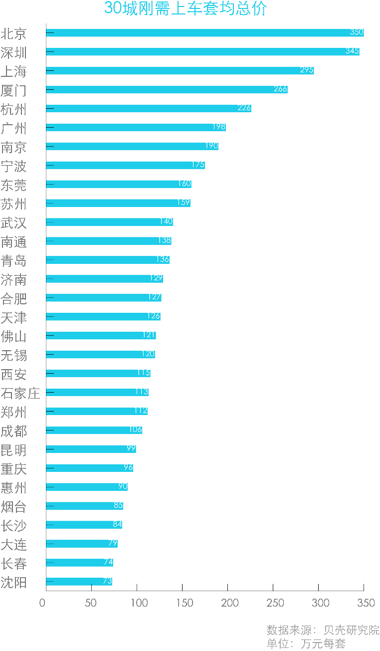 30城刚需“上车线”:22城超百万,北京套均价350万居首