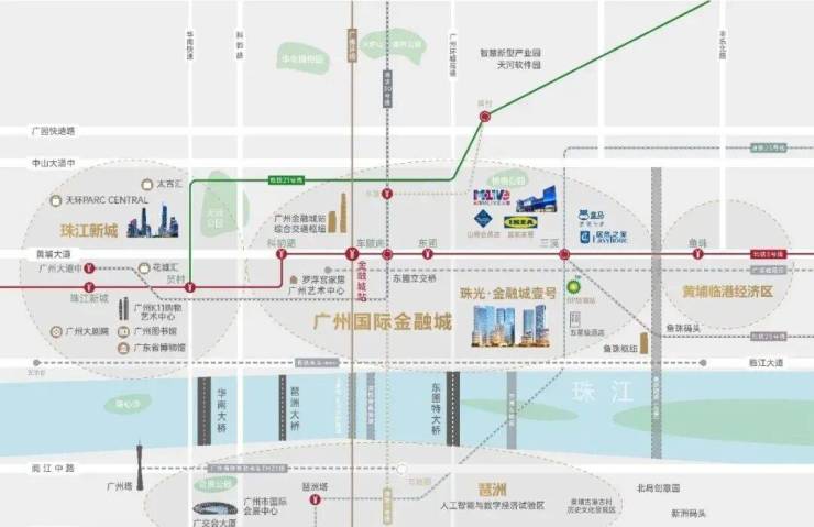地段的稀缺性,决定资产的核心价值。珠光金融城壹号雄踞广州国际金融城核心区,临江大道与车陂南路交汇处,精准落位珠金琶“黄金三角”经济带核心,西接珠江新城CBD,北邻天河智慧城,南望琶洲人工智能与数字经济试验区,东连黄埔临港经济带,是广州“东进南拓”战略的核心交汇点,更是资本与人才汇聚的价值高地。