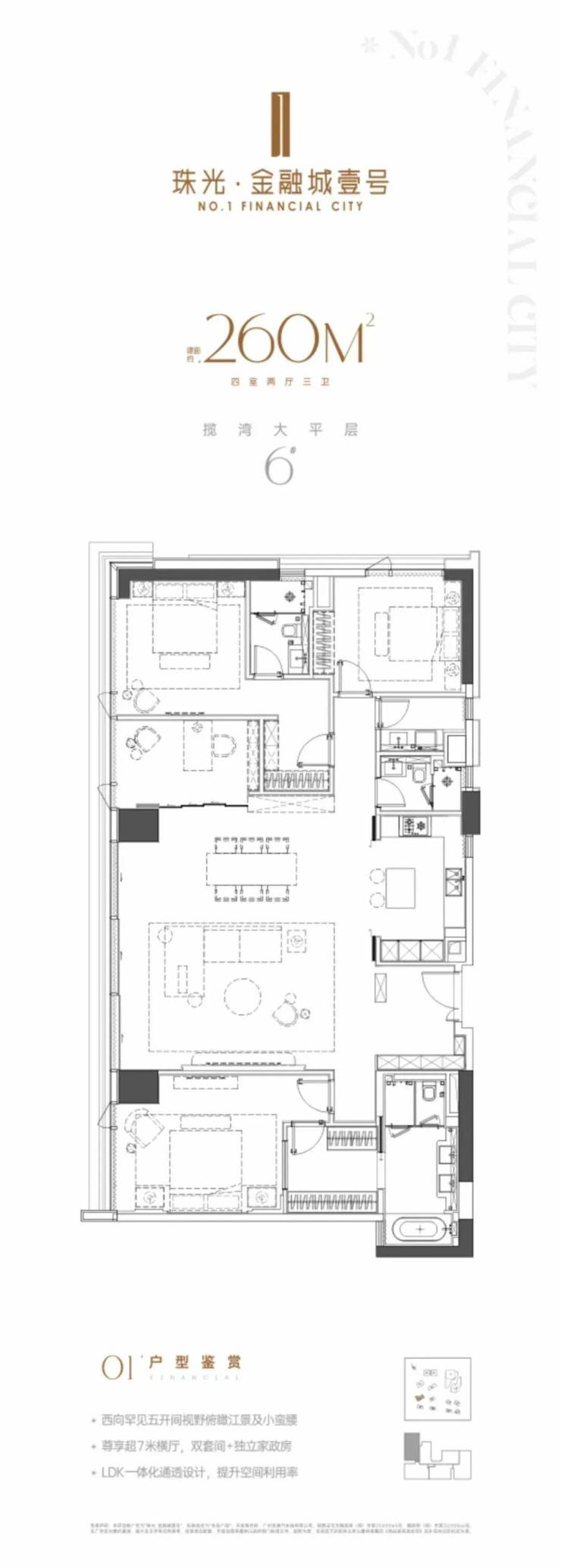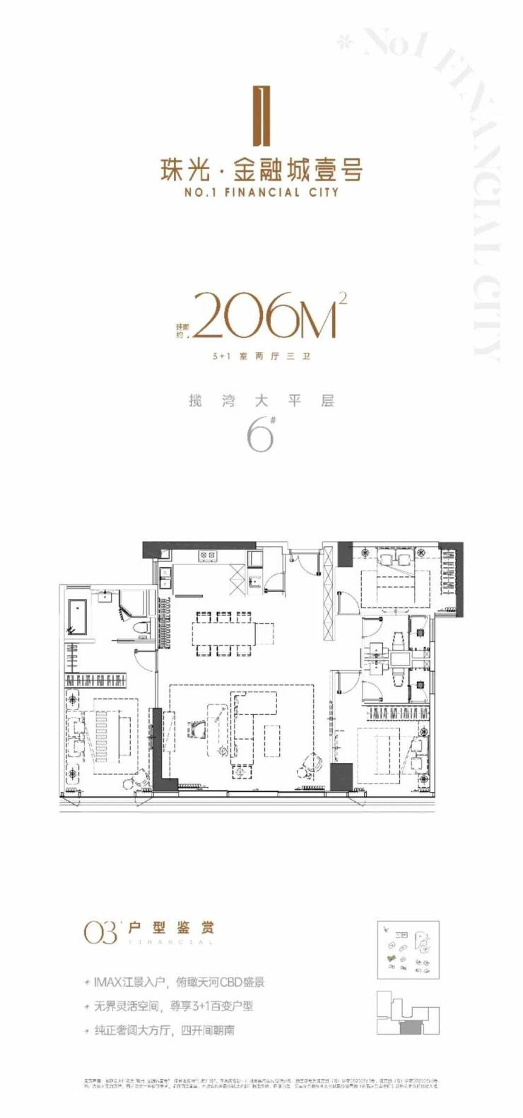 6栋瞰江大平层(16层-29层)206-260㎡,IMAX江景入户,帷幄CBD万千盛景,LDK一体化设计,无界延伸塔尖想象