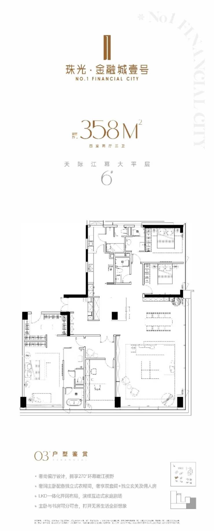 【二期大平层产品】6栋天幕大平层(31层-42层)280-358㎡,270°一线揽江视界,俯瞰珠金琶三大地标[强]旗舰级星级客厅,塔尖人物第二会客厅