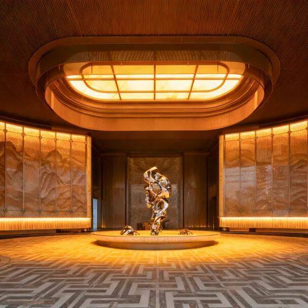 夜幕降临,墙面折射出星河般的柔光,借光影为笔,诠释着“镇宅辟邪、藏风聚气”的东方哲思。