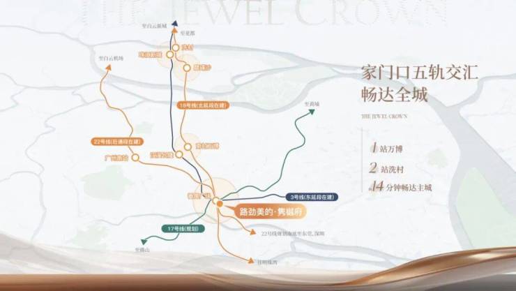 轨道交通有广州地铁3号线、18号线、22号线、17号线(规划)、3号线东延段(已建成即将通车)。往北1站万博、2站珠江新城,往南直通南沙、联动广/佛/莞,畅享湾区1小时生活圈。步行到地铁口12分钟,像我走的快一些10分钟内不在话下。